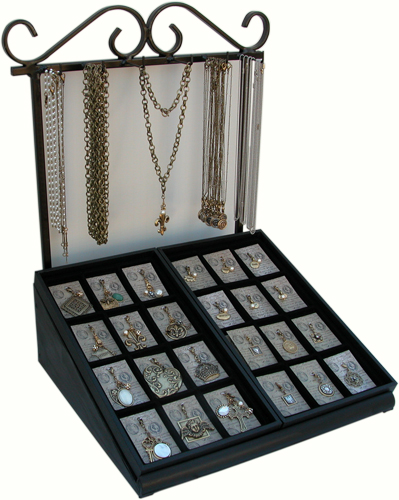 Often just a little tilt is helpful to showcase product. This wedge holds a single tray and is the perfect way to highlight Classic Legacy Charms. This tray is often combine with the small necklace display shown in number 4.