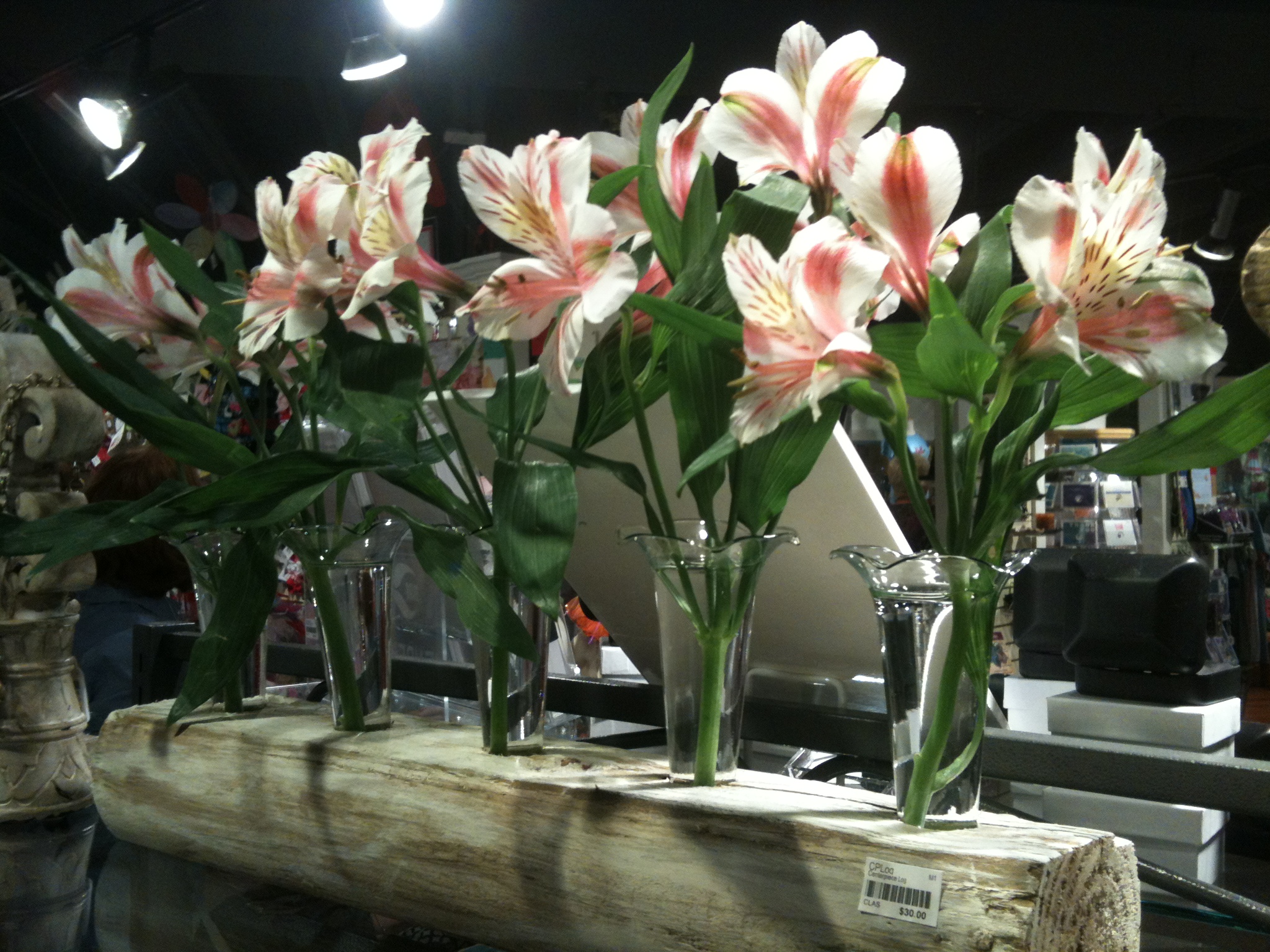 My hotel was so helpful. They arranged for a van to take guests to nearby restaurants and even the grocery. So I was able to buy these fresh flowers for the new Classic Legacy wooden/glass centerpiece. I’d say this was utilizing the support system!